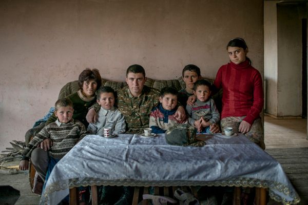 Nagorno-Karabakh is quite militarized. Growing the population and having children connects with the idea of protecting the land. Sons are valued greatly in Nagorno-Karabakh, celebrations around maternity wards when boys are born are some of the symbols. At the same time, some of the families I photographed had no fathers. In Charektar village, Alisa, eldest daughter of a single mother of eight Epraqsya, told us she wanted to serve in the armed forces. I told her about the military academy and female cadets in the capital Stepanakert, but Alisa said she would rather stay and work.