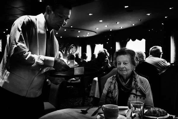 A visual journey which witnesses the fascinating anonymity of passengers and crew members living on the temporary small, brilliant cities on the sea that are the cruise ships.