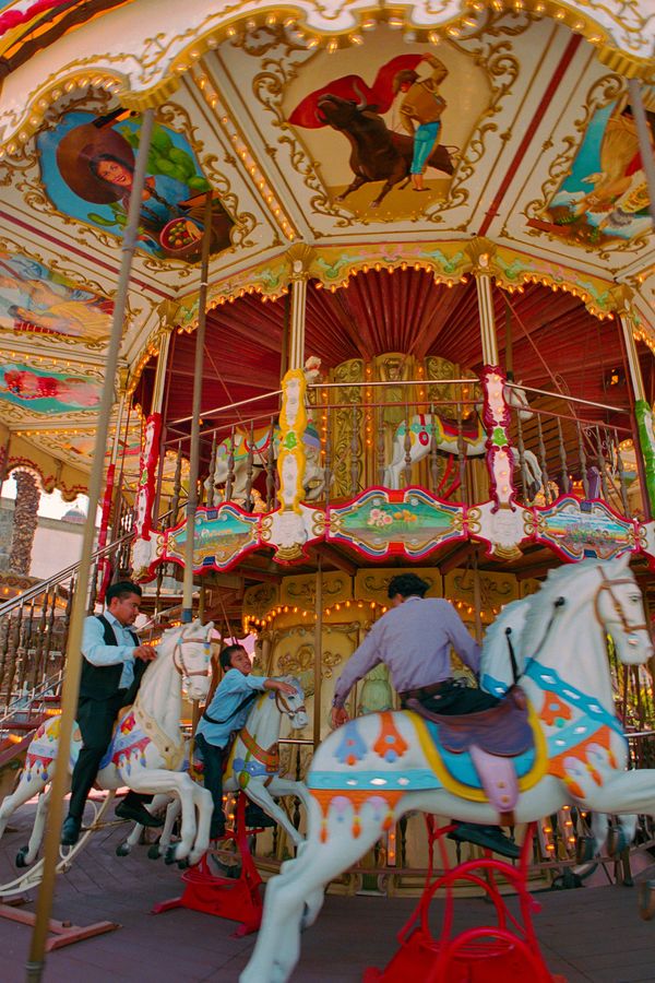 Abre Camino observes the endurance of cultural memory, using rich color and iconography to explore generational exchange amid shifting technological landscapes.