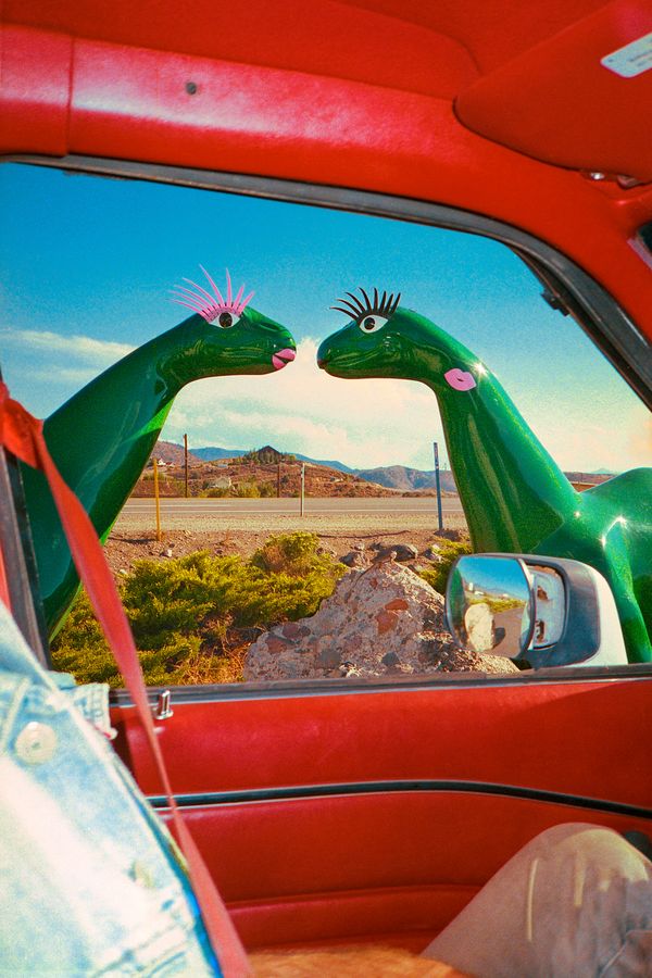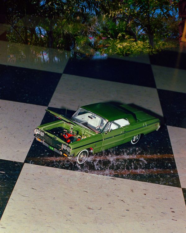 My practice examines the cultural symbols and visual languages that shape life in the United States, with a focus on Chicano expression—how familiar icons such as cars, religious motifs, and domestic objects carry meaning across generations. As a child, I watched my parents flip through maps and feed each other French fries as the Midwest landscape lent itself to the grandeur of the American road trip. Taking turns sleeping in the passenger seat, our annual 30+ hour drive home to Corpus Christi, TX from Milwaukee, WI, inspired this work highlighting regional nuances of the Chicano experience.