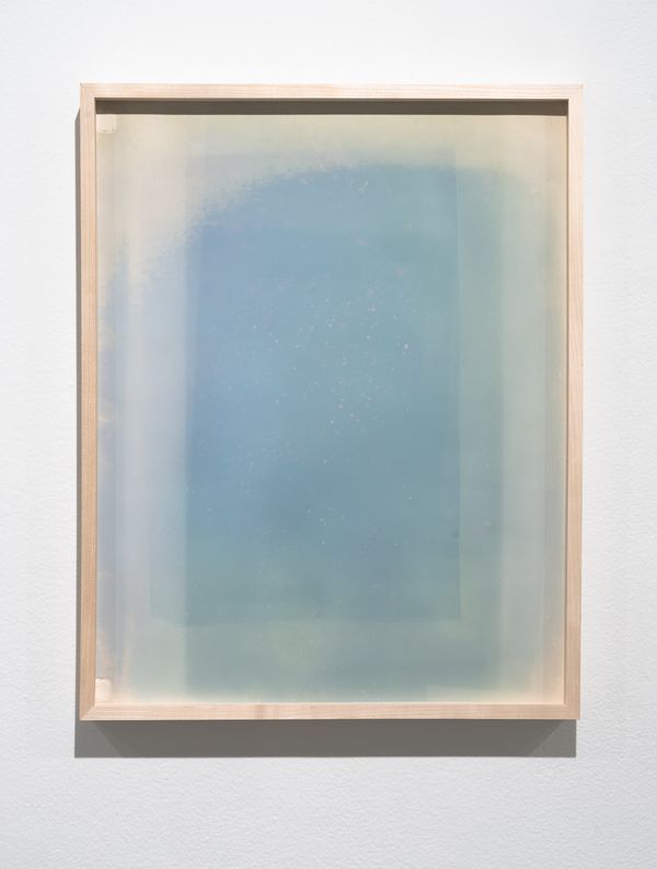 Containing a spectrum of representational to abstract images, All solid shapes dissolve in light emphasizes the way that all images oscillate between moving and still, visible and invisible.  Viewers often impatiently ask what the fading pictures will look like over time and how long they will last.  I prefer to leave this to our experience and imagination.  Just as it’s impossible to predict how long a person will live, it’s impossible to anticipate all the variables in the lifespan of a print.  As the project has continued, purely abstract images have been added.  I found pieces of paper stored in my flatfile drawers that had been dyed with impermanent plant dyes five to ten years ago and never exposed to the sun.  Abstract images formed on the papers as they were exposed to air in the shifting stacks over time without my knowledge.  Exhibiting these chance exposures with the other representational photographs frames a space for accepting change, as practice for accepting the emptiness and openness in all images.