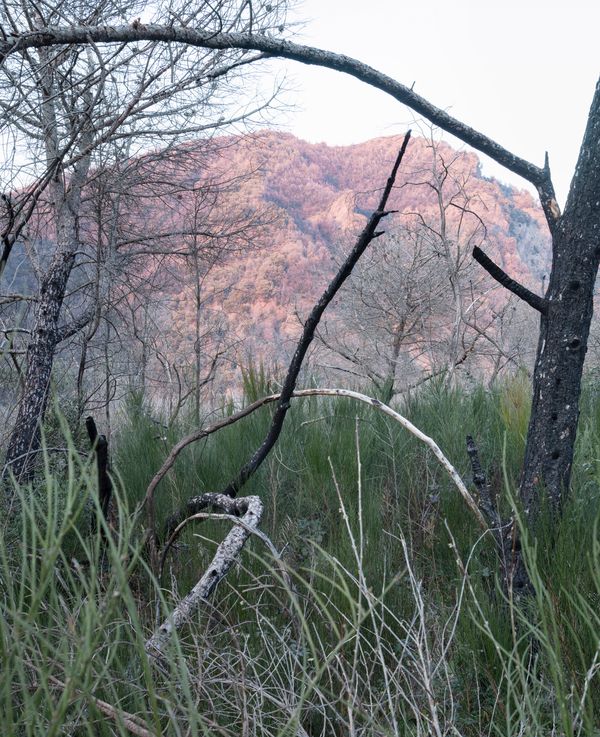 Amidst the fire, I am not burnt uses documentary photography as a research perspective into a landscape that is documentary in its own right, as the slopes of petrified and overgrown lava sense, store, shape and transmit information. As each eruption adds a layer upon a previous one, the documentary possibilities of photography seem limited to what’s visible at the surface. This surface is part of a cyclical narrative. Each eruption leads to the next cataclysm, each period of quietude to forgetfulness and complacency. ‘Amidst the fire, I was not burnt’ departs from the properties classically attributed to documentary photography – its said potential to approach a subject ‘in depth’, to ‘uncover’, to lay bare a ‘hidden and deeper truth’ – and opens new and radical possibilities. In considering the literal and figural surface as ground for documentary, ‘Amidst the fire, I was not burnt’ appears as series of photographic documents embedded in a speculative, narrative constellation.