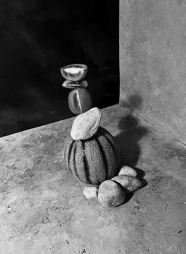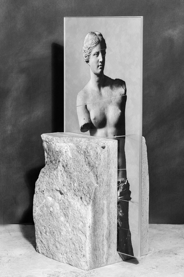 The series is made using appropriated imagery and studio still lives, worked back into by the artist and presented through various mediums, including photographic prints, stone works and hanging fabrics.