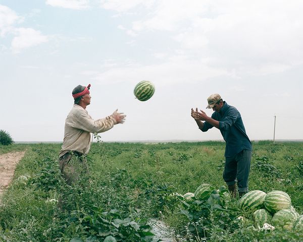 For centuries, the people of nowadays Uzbekistan have been planting crops such as watermelons, melons, peanuts, tomatoes, and seeds. For decades, families of the Ferghana Valley in eastern Uzbekistan have been coming for months to the central part of the country as seasonal farmers, cultivating the rented fields from dusk to dawn and spending their nights in improvised temporary houses—chaylas built out of materials at hand. For three years, I have been visiting the Farish district and fostering my subtle connection with several such communities. Documenting stark realities of agricultural labor while getting to know the workers’ routine, plans, and communal joy, I explore a unique intersection of dreams and labor, summarized in the sight of an Eiffel Tower oddly placed at the entrance to a seemingly unremarkable village.