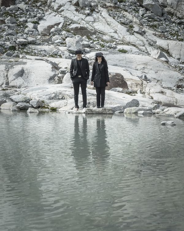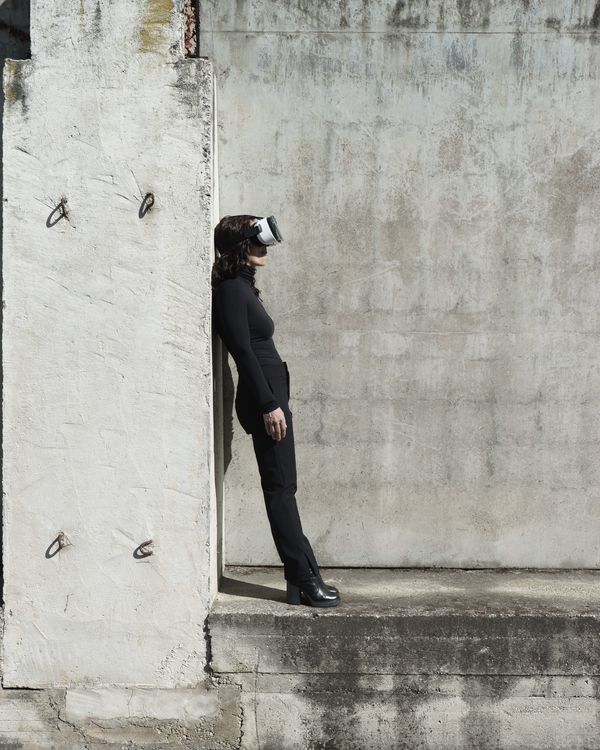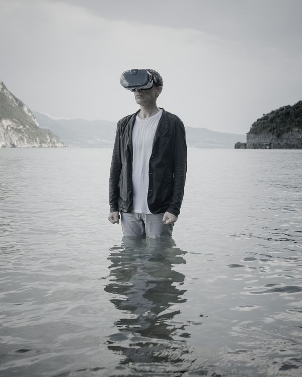 I represented this "estrangement" with a virtual reality headset, capable of making us travel in new scenarios, but our body is stuck.