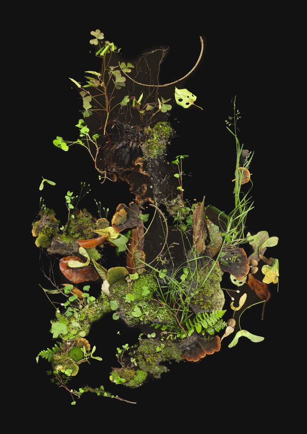 Large collages of real flora arranged into detailed Landscapes.