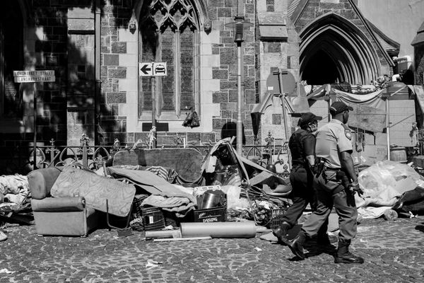 Known as the Greenmarket Square Refugee Sit-in, over 600 protestors took refuge in the Central Methodist church and on the streets surrounding Greenmarket Square, Cape Town, South Africa in October 2019. An increase in xenophobic attacks led foreign nationals, the majority originating from DRC, Kenya, Somalia and Burundi to seek assistance from the South African government to relocate to a country of safety.