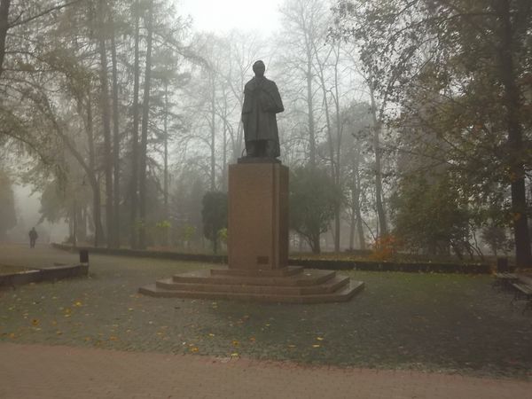 My authors photos that made on the foggy autumn morning on the central park of Ivano - Frankivsk City , Ukraine .