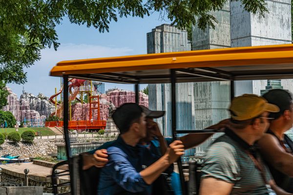 The project originated from my photo exploration of Beijing World Park, a theme park featuring miniature replicas of global landmarks. These aging structures, built in the 1990s to simulate international travel for a domestic audience, create a surreal juxtaposition between staged images of global landmarks and the realities of limited mobility.