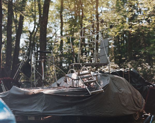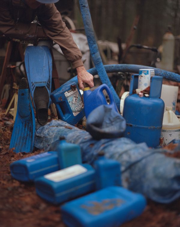 The ongoing series “Bad Dogs” centers around my visits to my childhood home-turned-junkyard over the past decade. In the beginning, I haunted the property like a ghost, photographing scenes of objects that felt both familiar and foreign. The land holds a geological timeline of my family history, and I dug for artifacts of identity in the strata. I shifted my attention to my dad out of a desire to be present and rebuild our relationship. His ever-growing accumulations had pushed us apart when I was a teenager, but together we have found a way to creatively communicate across our greatest barrier. His enthusiasm to make art together is an act of love that I hold protectively.