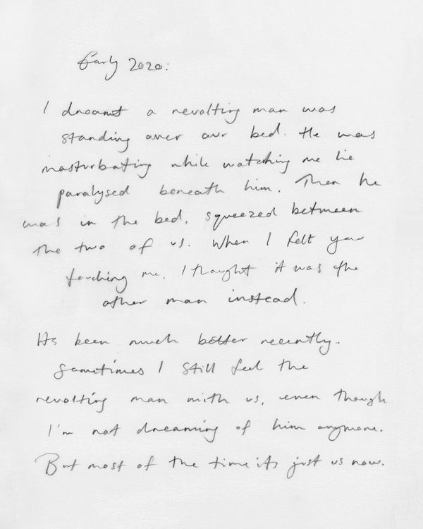 Beekeeper is an authentic depiction of staggered recovery. The work explores an ongoing reestablishment of the artist’s relationship with men; not as individuals but as an ambiguous concept. It considers the confused correlation between this and an understanding of her own feelings of vulnerability as a woman. Beekeeper was made in an attempt to reflect upon fear, threat and trust in a manner which is safe and accessible. For the artist, this work consolidated the continuation of life, new experience and growth.