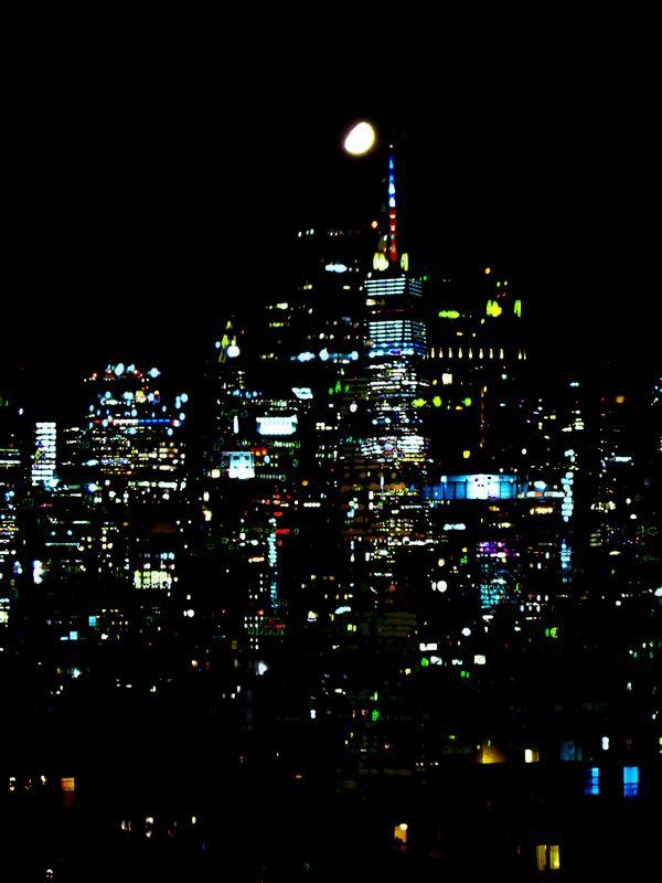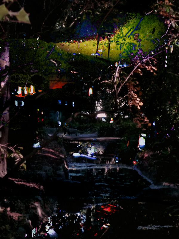 Behnd the curtains there's a city takes you on a surreal roadtrip from Los Angeles to New York, down dark roads and in-between spaces, nighttime neighborhoods, abandoned buildings, and surreal castles in the sky, through combined digital photos.