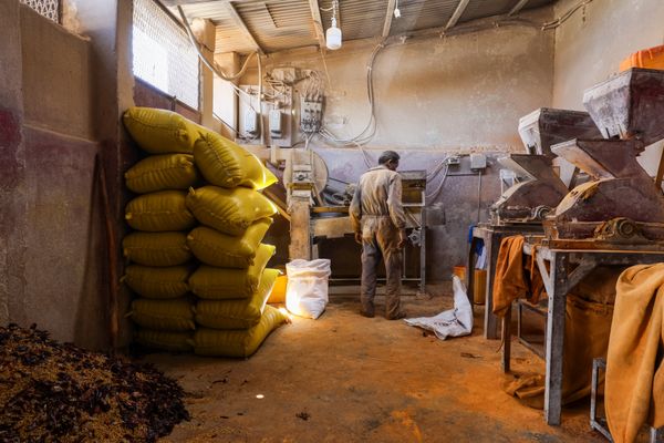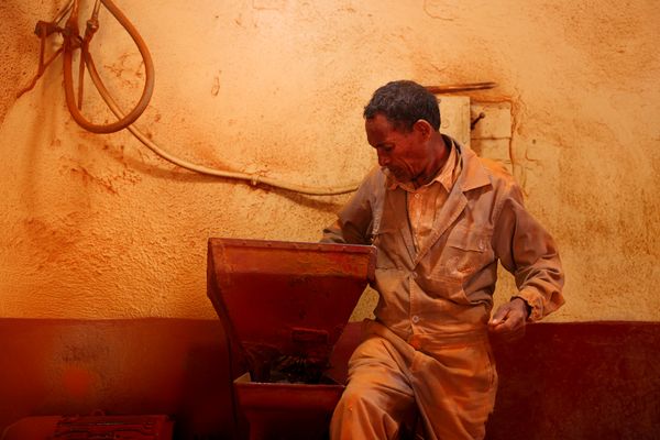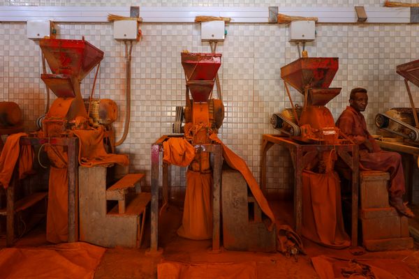 This is a small part of a long term personal project on documenting identity around the world. The chapter about Berbere was consolidated over three visits to Eritrea and two to Ethiopia, but focusing on the first. There is little visibility in the people behind everyday things that are taking for granted for their ubiquity. Berbere is a spice mixture that is intrinsically part of the Eritrean culinary identity. A rounded flavor of sweet, tangy, salty and pungent, it is essential in local cuisine. The process from farm to table goes through many phases, but it is in the milling factories that the product becomes final. Workers undergo long hours in an environment where it is virtually impossible to breathe, yet they do. Despite technological progress, the electrical mills require operators to feed them the ingredients, recover and store the resulting powder. These people are ultimately responsible for the production of an element of identity that is taken for granted, yet defines taste, family and community.