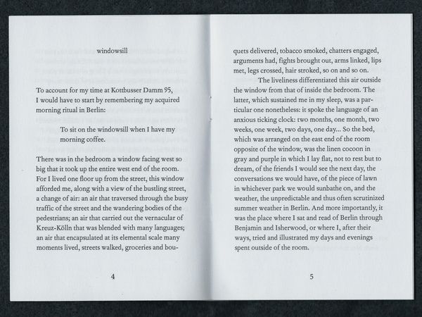 'Berlin Notebook' began during a residency in Berlin in 2019, which then gradually evolved into a constellation of photos and texts. My initial interest in Berlin, which echoed Christopher Isherwood’s secret desires in his novel The Berlin Stories (he once wrote ‘Berlin meant boys’), was confronted with the renewed vibrance of another century. I was then preoccupied with a new set of questions: what if I always belonged there? what if I was one of them? Berlin thus became incredibly familiar — just like Chicago and the US, my new home, a place that I came to, where I was afforded an opportunity to reflect and to reimagine who I could have been. With this question in mind, this project begins where seeking leads me to — through photography, I encounter and engage, feel and love, identify; through text, I work through the contradictions of life, memory, reality, and fantasy.