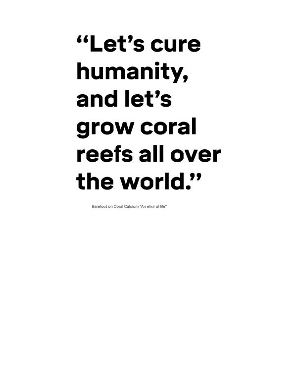 To promote food supplement « Coral Calcium », marketers claim that the calcium contained in the coral is much more assimilable by humans than any other calcium and coral calcium would cure the most serious diseases such as cancer or heart disease.