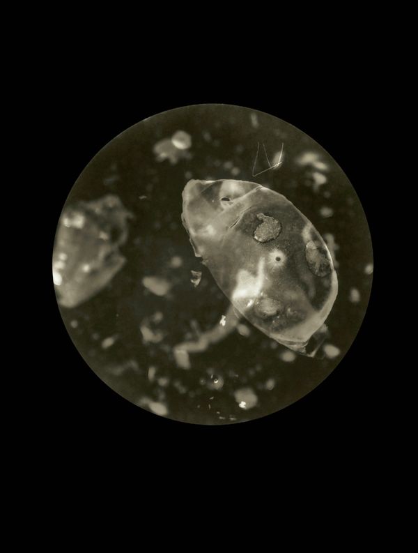 Presented as microscopic samples, objects of marine plastic debris, recovered from the same location, mimic Thompson’s early plankton discoveries. The work represents contamination of plastic particles in the natural environment, creating the perception of past scientific discoveries when organisms were free from plastic. Presenting new ‘specimens’ created from recovered debris, serves as a metaphor to the ubiquity of plastic, encapsulating in miniature the larger problem of an imperfect world.
