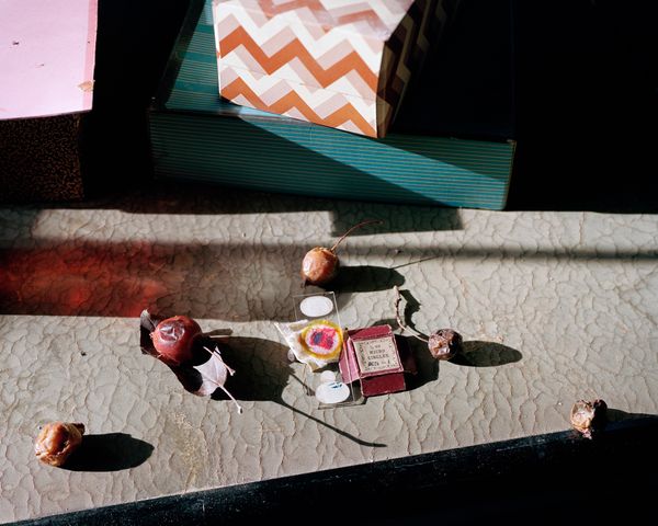 Each time I visit Margaret I enter through the kitchen door, and each time she has a new story to tell which enriches my work like a complex broth. The kitchen and the yard are where we do our fieldwork, as we pick fruit and remove the rotten parts to make a more palatable jelly. This process has become a sort of poetry for me, as I document her showing me how to strain the last remnants of sweetness and color from crabapples, using bandages to catch the pink-stained juice. The work encircles itself as our conversations about native flowers, life and death become the seeds of my photographs.