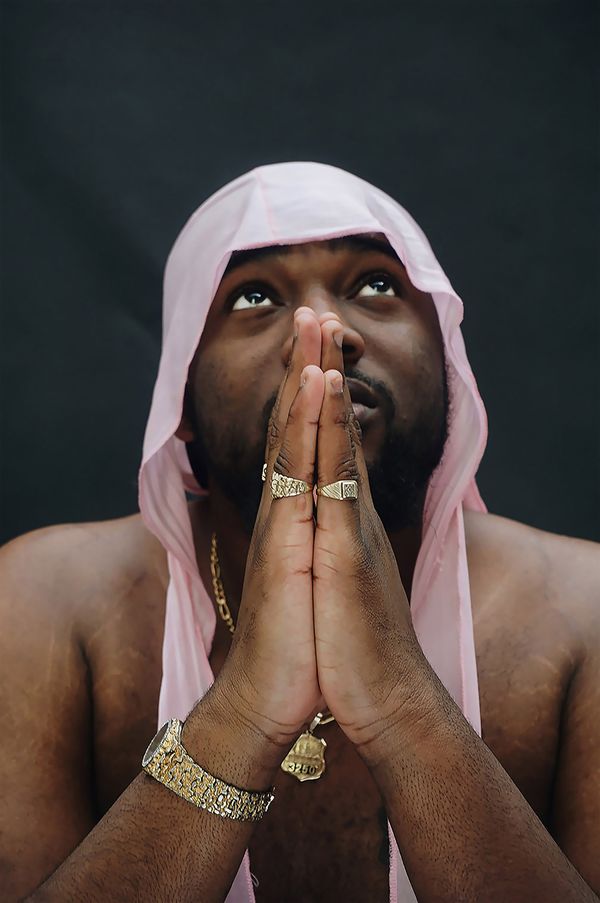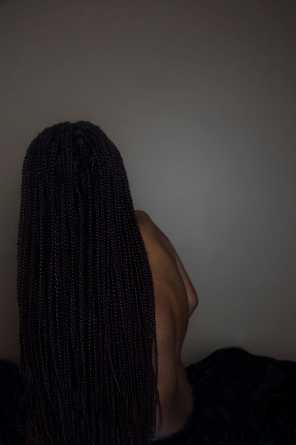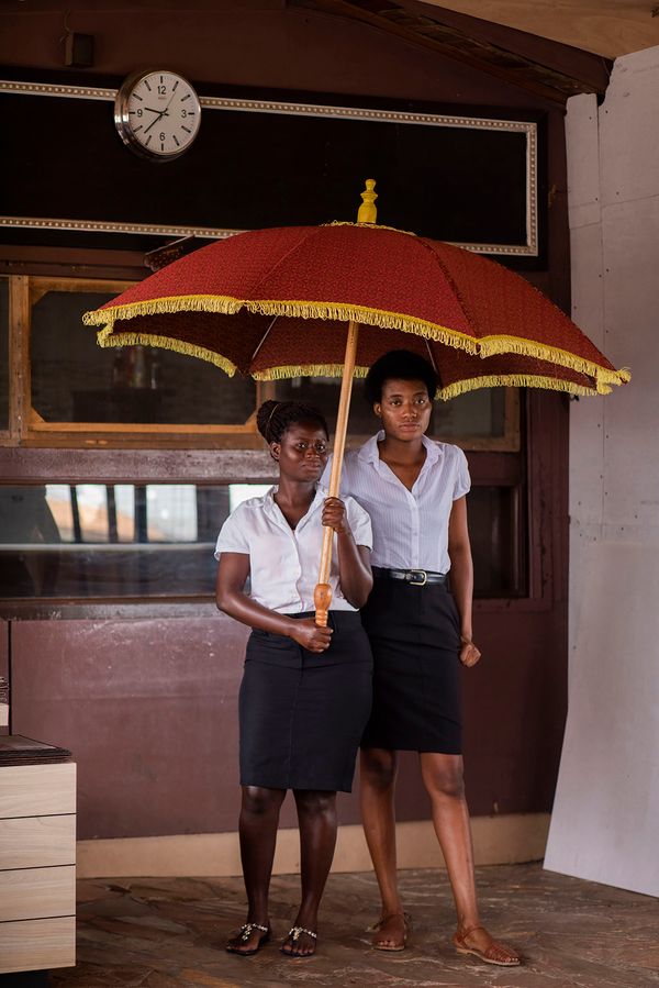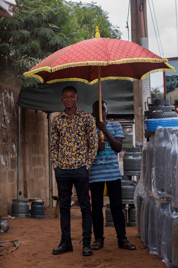 Symbol of power is the Royal umbrella. It is used to protect and shade the King, Chiefs, and Queen mothers. The umbrella in my art as well as looking at the sovereignty of the Black Aesthetic. Through self-portraiture, I reveal parts of my body as a way to broach my own Blackness. The scars that are left on my body are from a life of surgeries.