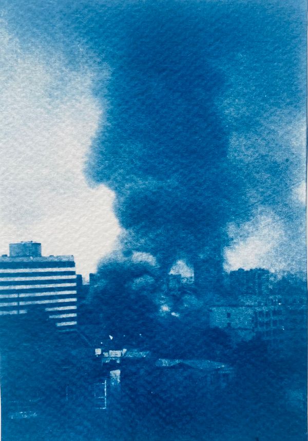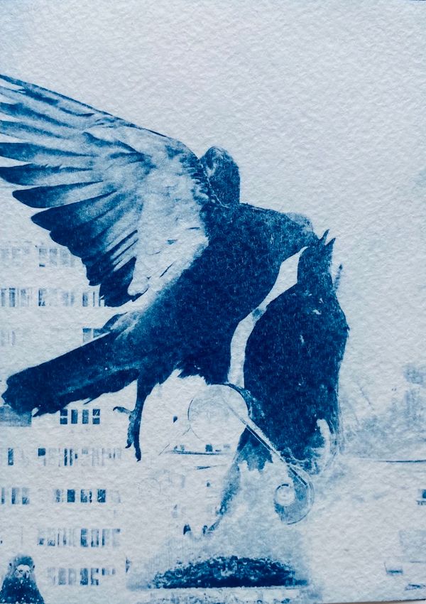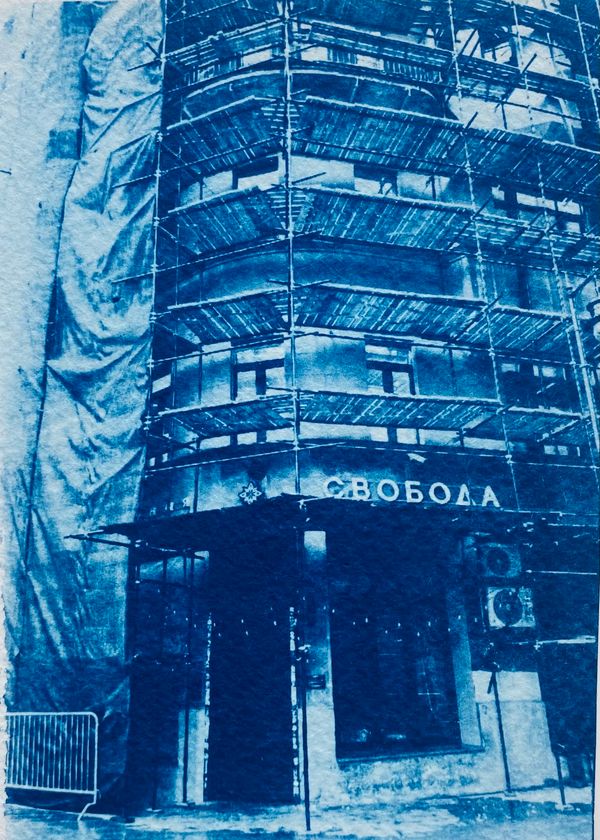 In this series, idyllic views of Moscow are juxtaposed with more unsettling scenes: police barricades, solitary women, brawling pigeons, a shuttered bar named “Svododa” («Freedom» – eng.) undergoing reconstruction, and a plume of smoke rising from a fire. These symbols — subtle and stark — capture the emotional texture of a turbulent era.