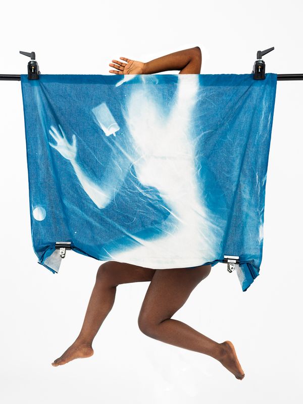 In this series, I negate my body through cyanotype prints, a contact print, presenting a void white shape. My body is simultaneously displayed and removed, symbolising the hypervisibility and invisibility afforded Black bodies, allowing myself and the audience to assign our own historicity and meaning. Blackness is multifaceted, extending beyond the skin. This series explores the physical and conceptual nature of the Black body, and its relationship to photographic agency.