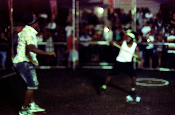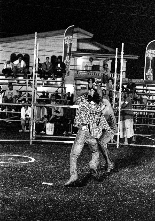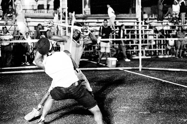Stick fighting is one of the ritual practices that was retained by diasporic Africans and dates to the 1700s in Trinidad and Tobago. Men and women duel with “bois”(sticks) in Gayelles or rings. The battle is accompanied by drumming and singing the singing of 'lavways', with the stick fighters moving in a dance-like motion.
