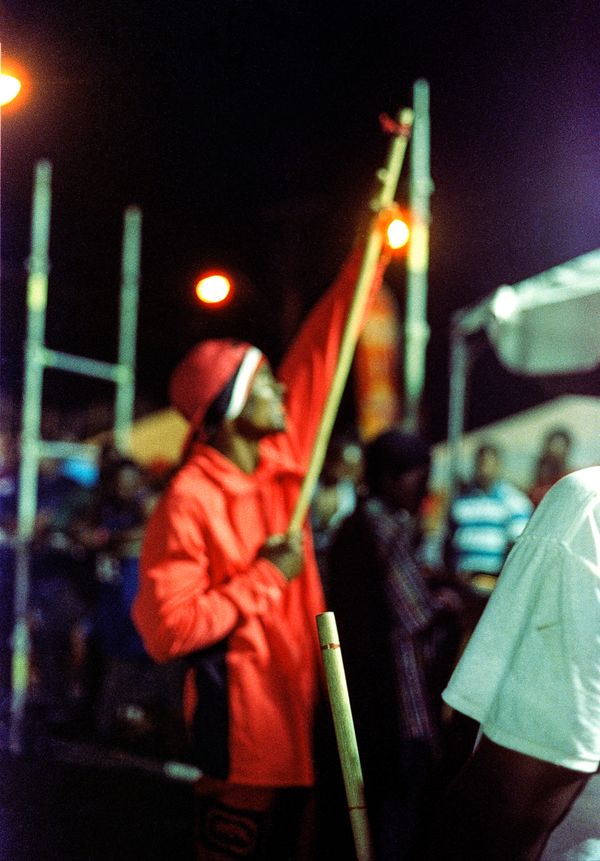 These images are part of a series of projects where I explore the retained practices of diasporic Africans in the Caribbean. The Chantuelle in this series is embodied by the silhouette in red, who is both the motivator and reminder of the outcome of a battle.