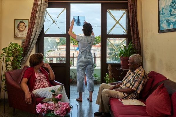 Moník Molinet creates an imaginary memory of life with grandmothers and grandfathers that now becomes real through the photographic act. Nine actors assume these roles in intimate, everyday scenes constructed from personal anecdotes and desires. To achieve this, Molinet stages 29 situations in four homes in Havana belonging to the same actors.