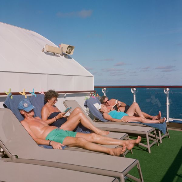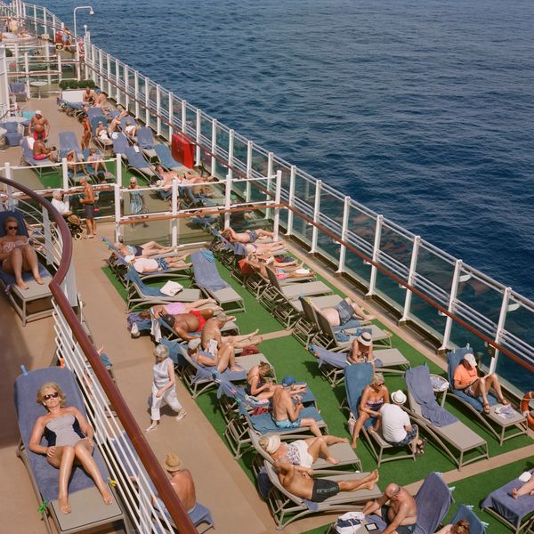 The project was shot during a time of particular political uncertainty at home. In the very week that Britain left the E.U, leaving the country in economic ambiguity, passengers aboard the ship took more interest in sun protection than the politics unfolding ashore.