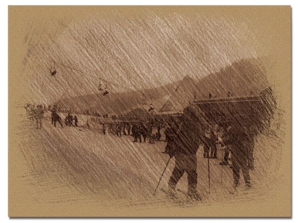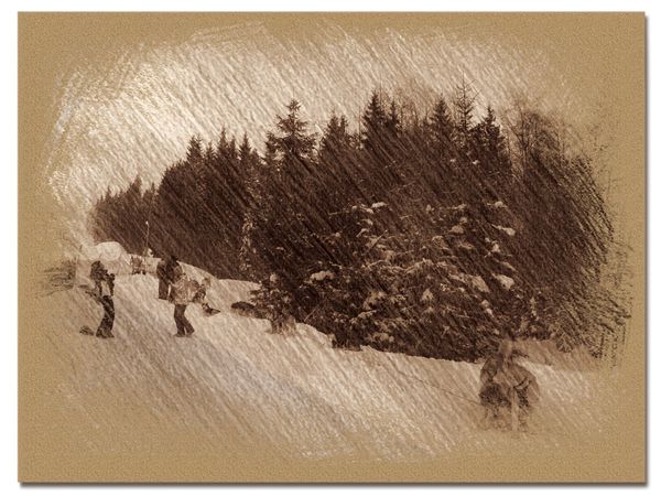 My authors photosketches in style trois coleur drawing that made on the Carpatian ski resort Bukovel which located in village Polyanytsya of Ivano - Frankivsk region , Ukraine .