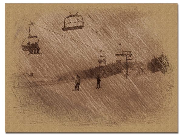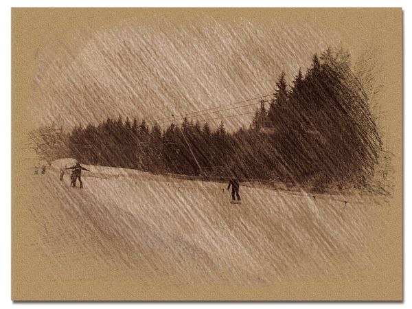 My authors photosketches in style trois coleur drawing that made in Carpatian ski resort Bukovel which located in village Polyanytsya of Ivano - Frankivsk region , Ukraine .