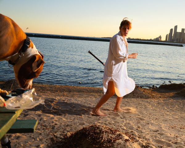For me, the camera has turned into a conversation device. I ask all sorts of people if they want to have their picture taken, and through these interactions I’ve come to learn so much about people who come to the waterfront just like I do. In addition to the camera being a catalyst for meeting people, the portable strobe light adds a certain drama to everyday activities. The strobe highlights the importance and beauty of the mundane. It’s almost as if there’s a stage manager just out of frame pointing a spotlight on the scene, exclaiming how beautiful this fleeting moment is. This way of working results in a mixture of performing for the camera and candid moments, and somewhere in the murky waters between the two is where I want my work to exist. I’m interested in the push and pull between “documentary” and “staged” photography, and I see this project as blend of both.