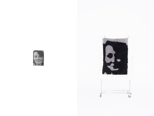 In the first part of the project, I work with prison mugshots of women sentenced after the falsified 2020 presidential elections in Belarus and weave them myself into carpets. The portraits are intentionally blurred and abstracted, reflecting the regime’s attempt to erase individuality and reduce prisoners to faceless elements of a repressive system. This visual disappearance extends political violence: in prison, women are subjected to sexualised, psychological and physical abuse. The mugshots are sourced from the archive of the human rights organisation Viasna. The carpets are woven in a black-and-grey palette, echoing the quality of the source material: mugshots printed on cheap, fading paper. Each carpet measures 100 × 70 cm and is framed with textile margins on the sides.