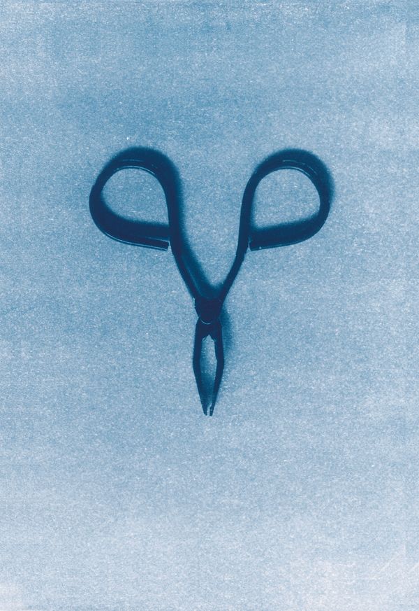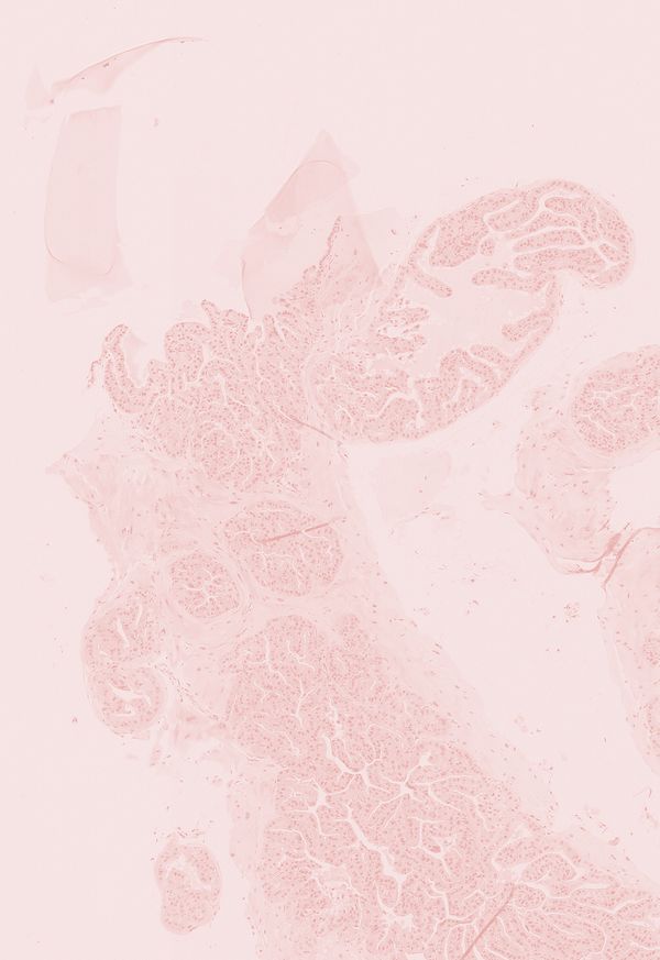 The general staining procedure with hematoxylin-eosin used in histology paints tissue samples in pink. To the photographs printed in cyanotype –old printing system, characterized by the Prussian blue color– microscopic photographs of healthy cells processed in pink taken in collaboration with the Institute of Biomedical Research of Bellevitge (IDIBELL) were joined. Thus, if the blue evokes the exterior and the imposed identification, the pink stands for the interior, for the self and the self-determination. "Casa Azul" shows the binary, the eternal struggle of these people to be what they are: women.