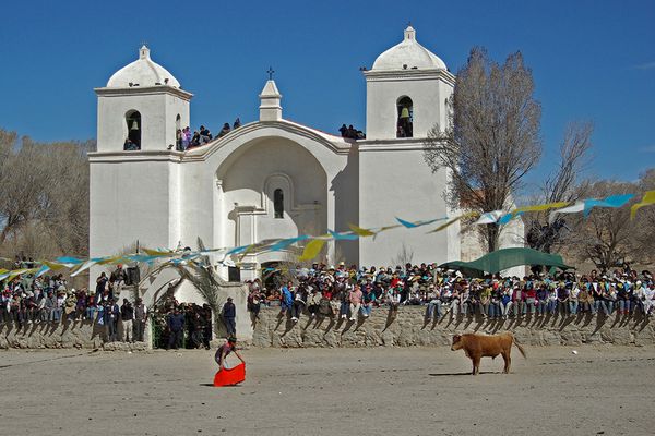 Different from bull-fight from other parts of the world, in Casabindo the animals are not killed or hurt. He, who seizes the band, can will proudly offer it to the virgin as a sign of faith.
