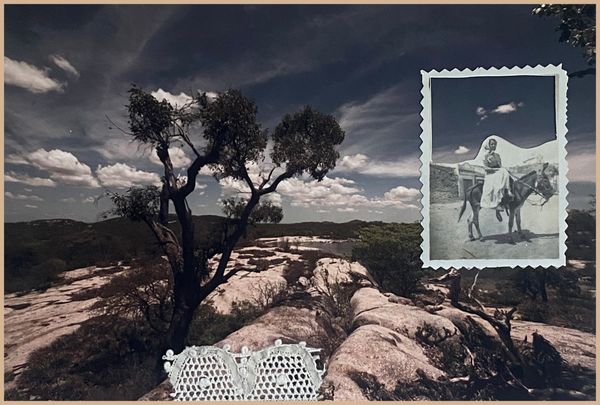 • Dobra do Tempo (Fold of Time) explores the continuity of forms and memory through collage. I juxtapose my landscape photographs with hand-cut images from the family archive and fragments of Renaissance lace—a tradition introduced to Brazil in the 19th century by French nuns and passed down through generations of rural women. These compositions stitch together epochs, gestures, and materials, suggesting that memory is not fixed, but elastic, stretching across time, folding and unfolding with each act of attention.