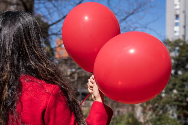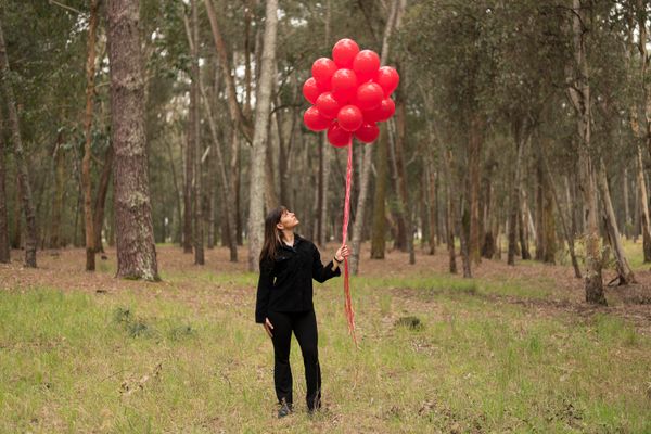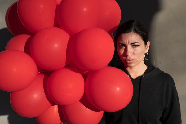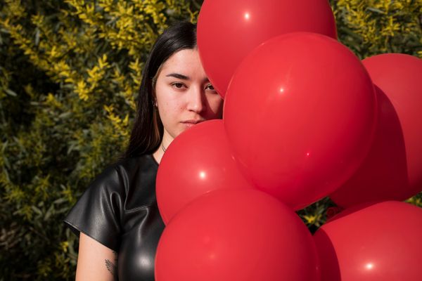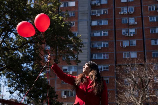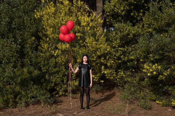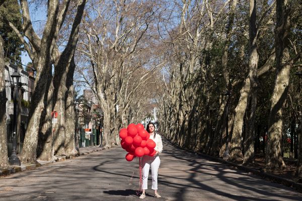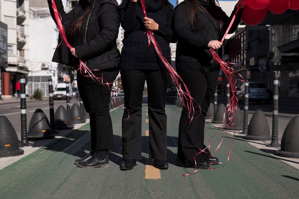 Choreographies of Silence is a collaborative photography project with Uruguayan women that addresses gender violence and resilience, using red helium balloons as a metaphor for time, memory, and collective resistance.