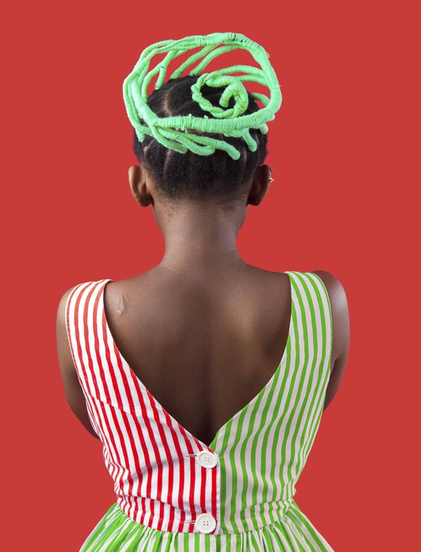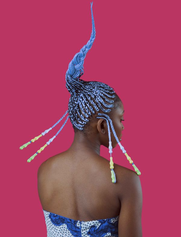 ​The availability of colorful extensions and wools in local markets today has led to unique variations on threading and braiding techniques. Chroma is a celebration of Both traditional and contemporary methods. The series takes more of a whimsical approach to Ojeikere’s documentary style and recontextualizes some of his (and other) hairstyles to highlight current and imagined hair designs, celebrating the art of Nigerian hair culture.