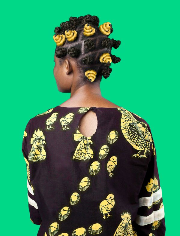 Chroma: An Ode to J.D. 'Okhai Ojeikere, is an on-going series which celebrates women’s hair Styles in Nigeria through a fanciful, contemporary lens. The images are inspired by hair color trends in Lagos and by the late Nigerian photographer J.D. Ojeikere.
