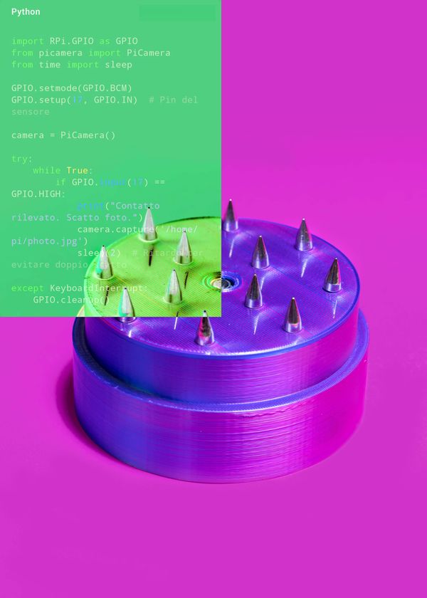 Cibelis is also an investigation into the power of images and their fragility. These are photographs that originate from pain and present themselves to the viewer as uncertain simulacra. This reflection extends to the use of Artificial Intelligence, which becomes an integral part of the work. With the help of AI, the artist created the Cardo-Camera, a functioning device that reinterprets the ritual tool of the Vattienti by transforming it into a photographic camera. Each contact with the skin activates a shot: the act of flagellation, which once produced only blood, now generates images.