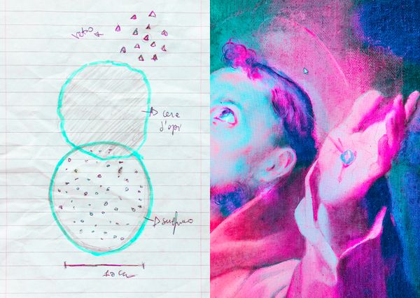 Cibelis originates from the ritual of the Vattienti of Nocera Terinese, a controversial Italian devotional practice that still involves self-flagellation with a tool called cardo. It is a circular cork instrument equipped with shards of glass, which, when in contact with the skin, causes lacerations and bleeding. Every year, during Holy Week, hundreds of Vattienti walk through the streets of the town and cover them with blood.