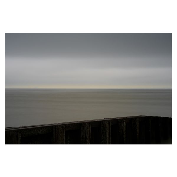The skyline, the horizon is central to Anne-Meike van Willegen’s Coastline series. On quiet days, the sea seems to be performing a choreography. Slowly rolling waves, illuminated by the setting sun, light and subdued. At other times the water is close, fierce and threatening. Waves are beating the seawall. Vastness is a recurrent theme. Occasionally, someone else is present but most of the time the places are abandoned and you are alone.