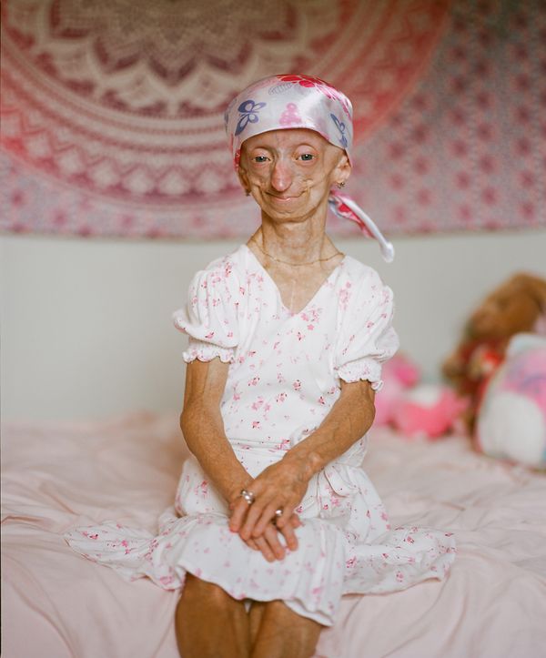 The word progeria comes from the Greek words pro and gēras, meaning "premature old age." With a life expectancy of around 15 years old, teenagers' bodies have effectively aged at an accelerated rate of 8-10 times the norm. Kaylee Halko just had her 22nd birthday.