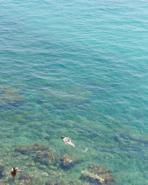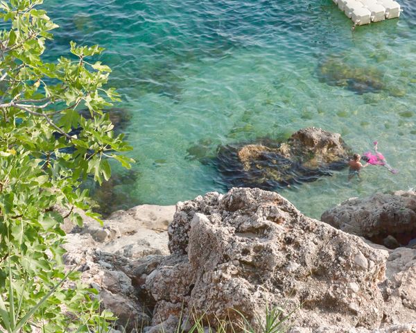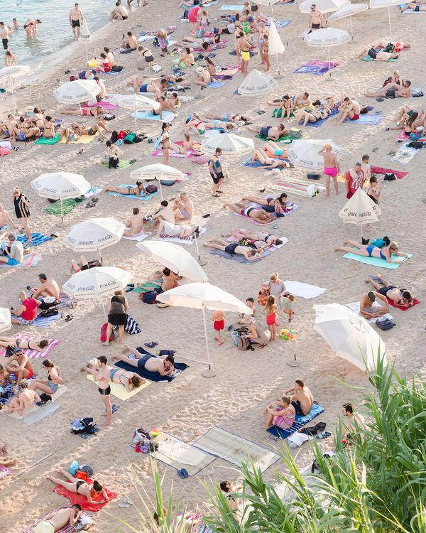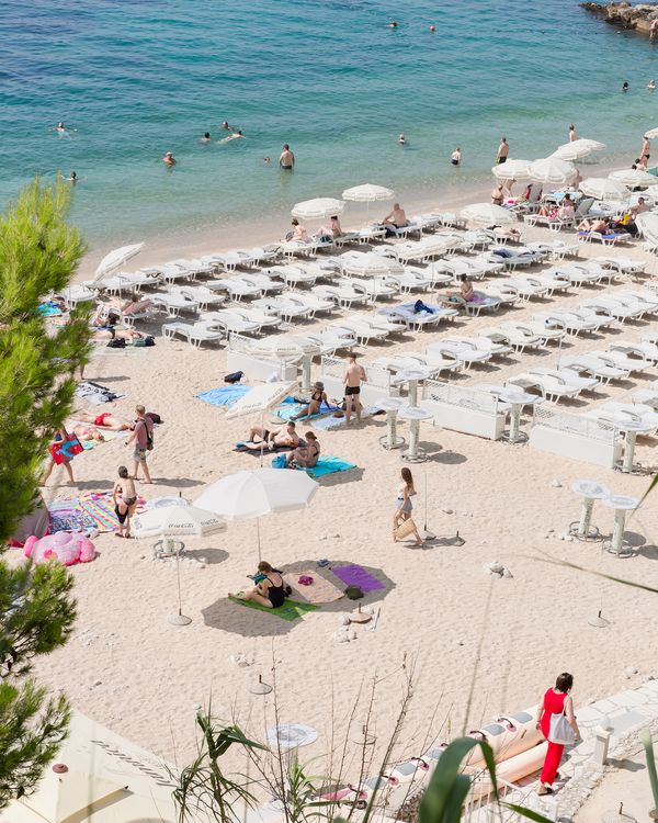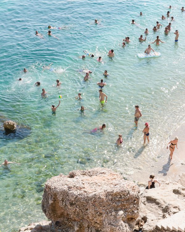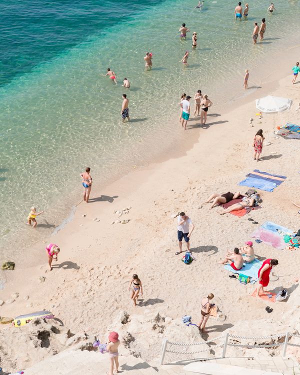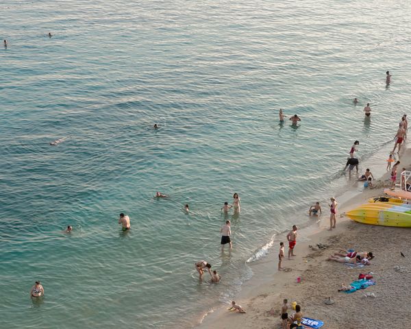 Directly outside the walls of the Old City is Banje Beach, a popular spot for tourists and residents alike. The beach is populated from early in the morning to late in the evening. Much of the time it is more crowded than the city, with barely an inch to spare. And yet, within the chaos of the crowds on the beach, I find a celebration of life and ease which was lacking on the city streets. Surprisingly for such an urban beach, the water is impeccably clean and crystal clear. The people are literally at their most exposed, but their least self-conscious. The bustle of people's hurried consumption and motion through the streets, and their unfettered relaxation at the beach, are both punctuated by that fleeting moment when they catch themselves being seen.