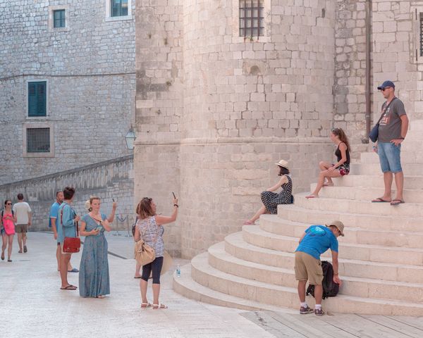 In my photographic practice, I have been interested both in the visual character that tourism imposes on popular sites, and the way that people act when they are at true leisure at the beach. Dubrovnik offers an opportunity to explore both ideas at the same time, setting into relief both the detached and at times thoughtless way people consume the world around them, and a beauty that can be found in genuinely engaging with nature and our surroundings, and each other. This project has two distinct parts (entitled "Town Hall" and "Consuming the City's Soul" respectively) which, nonetheless, become more meaningful when taken together.