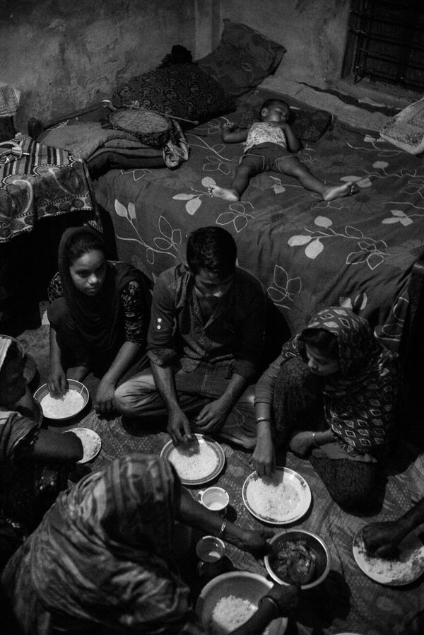 My red dress, printed with tiny white and yellow flowers. Maybe the cotton was grown in Burkina Faso. Without ploughs, without tractor sprinklers, without combines and subsidies, with bad seeds. Maybe the fabric was woven in large dark and noisy halls where tedious work may have been done by children because their hands are tiny and skilful. Maybe it was coloured by men working in even darker and noisier places where the air - thick and full of poisonous gasses - glues itself to their skin, corroded with aggressive chemicals. Maybe it was made by a seamstress, maybe by a guy whose possessions are stacked in a small backpack that's hanging on a wall above his work station. Which is, at the same time, also his bedroom. But surely, the one who gave my dress a name, earned some substantial money along the way.