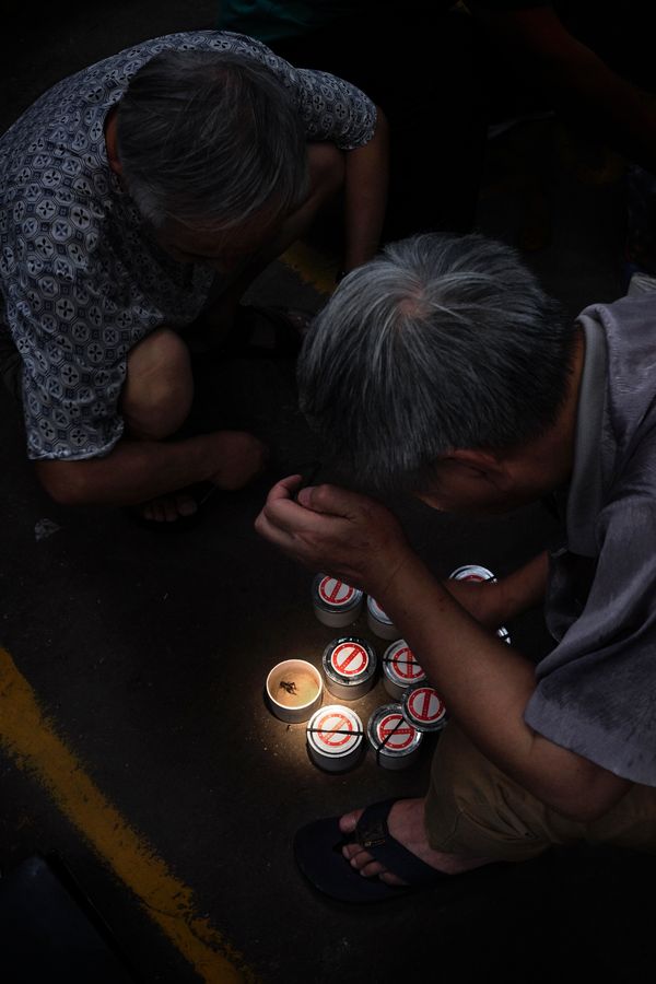 My last project, “Crickets”, deals with a thousand-year-old tradition that lives on in China: raising crickets to hear them “sing” or involve them in tiny fights. After a first discovery trip and months of research, I set off again in 2019 in the footsteps of this culture. There, I spent weeks browsing the largest insect market in all of China. I followed cricket hunters in the darkness of remote cornfields in Shandong Province and met mafia members buying millions of yuans’ worth of crickets for illegal fights. Immersing myself in this tradition, I learned the symbolism of flowers in traditional Chinese painting to compose my still life and I went for a walk in the streets of Shanghai – as amateurs traditionally do – with a singing cricket in my pocket.