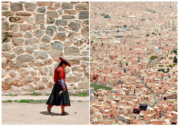 This project aims to represent Andean Countries, stuck in between the Past and Future. Like all my latest projects, I choose diptych as format to catch the Andean social and cultural dualism, a long time stratification of Society: indigenous v/s colonist, the rich v/s the poor, the native people v/s the conquerors, National Borders v/s Indigenous Territory. Native traditions and habits are radicated in National Countries such as the Western culture and influence. During the last centuries, both cultures have lived side by side, in a permanent clash among different identities, ethnities and cultures. In some cases, differences are melted together in a new cultural tradition.