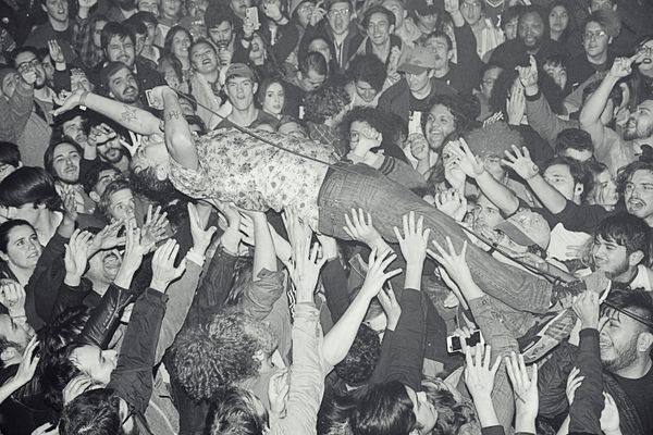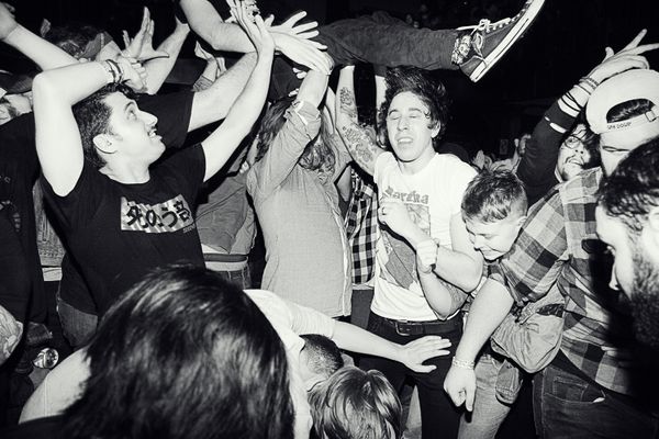 Crowds/masses and individuals at live concerts whose activities are enthusiastic and expressive, or sometimes chaotic and out of control.