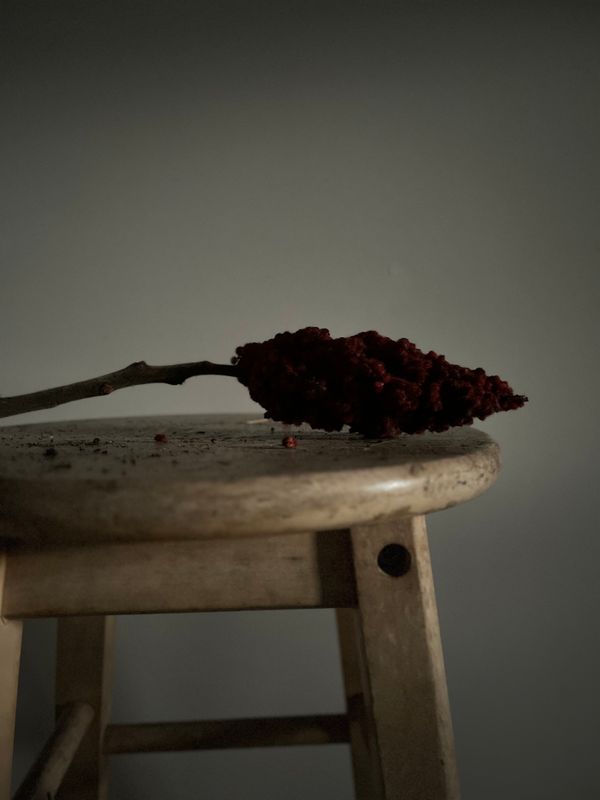 I worked with Staghorn Sumac, processing it into spice and exploring its materiality. With the foraged wood logs, I used photography as a tool of close study — reimagining them as sculptural forms shaped by time and pressure. Aspen bark revealed delicate variations in character and texture; I framed each piece to highlight its individuality while holding space for the multiplicity within a single tree.