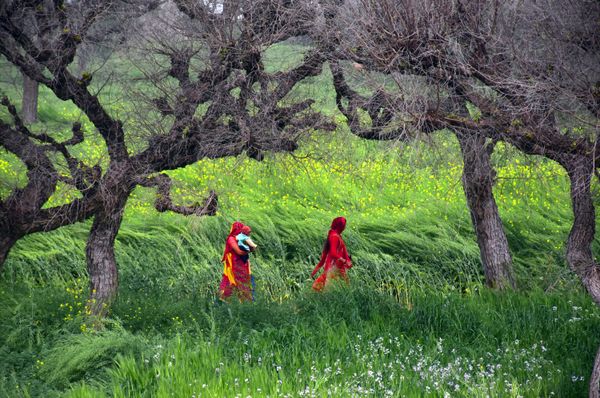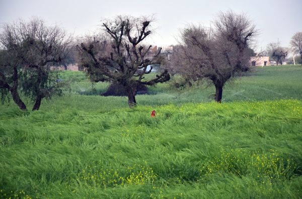 One evening, while standing on a terrace, I noticed a vast field of long grass stretching into the distance. Suddenly, a flash of red moved through the landscape and came to a halt. It was a woman, adjusting her ghunghat (veil). Then, in an unexpected shift, she pulled it back and began taking selfies. Meanwhile, the women around me were engaged in a conversation about the dishes she had cooked that morning. Their world continued as if nothing had changed.